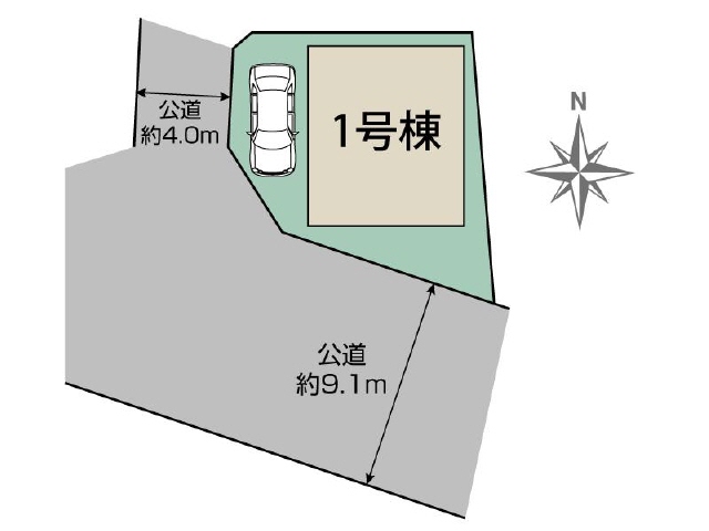 西側道路(公道/幅員4m)に7m接道、南側道路(公道/幅員9m)に10m接道 |