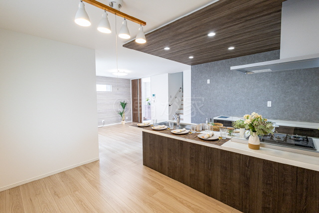 19JLDKリビングイン階段です。宅配ボックス、キッチン下がり天井、カップボード付、食洗器付など魅力満載新築戸建●駐車場は現地ご確認下さい● |
