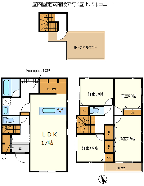 洋室4.5・洋室5.3・洋室5.3・洋室7.5・LDK17 |