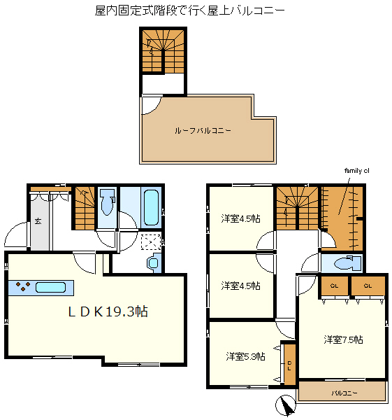 洋室4.5・洋室4.5・洋室5.3・洋室7.5・LDK19.3 |