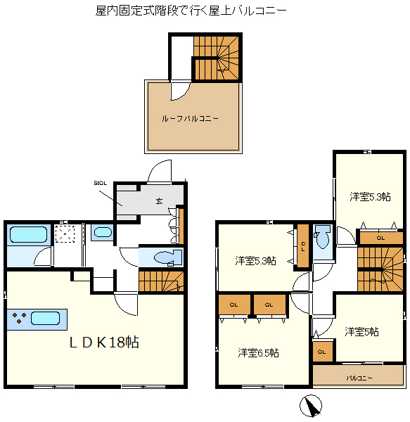 洋室5・洋室5.3・洋室5.3・洋室6.5・LDK18 |