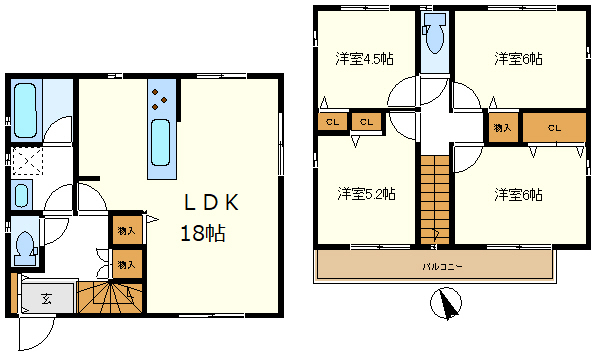 洋室4.5・洋室5.2・洋室6・洋室6・LDK18 |