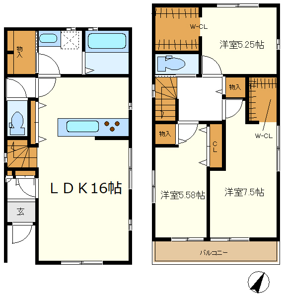 洋室5.2・洋室5.5・洋室7.5・LDK16 |