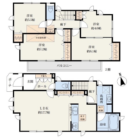 洋室4.6・洋室5.5・洋室6.1・洋室7.2・LDK17.7 |