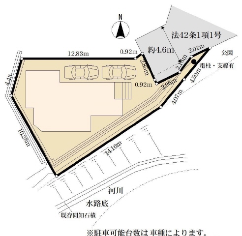 北東側道路(公道/幅員4m)に2m接道 |
