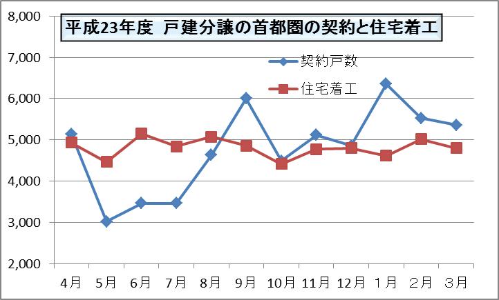 震災の影響で5月・6月・7月は大きく落ちました。4月も少なかったのですが、3月契約予定だったものが延びて4月に入ったためで、実質は3000戸割れでした。