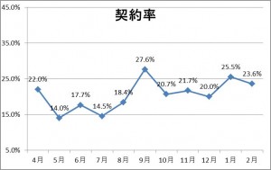 そのために、着工は前年度を上回り、契約戸数も多かったのですが、契約率は悪いという結果になりました。