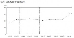 貯蓄ゼロ世帯は2003年に20%に乗ってから2010年までほぼ同じで推移したのですが、2011年に突然増えました。