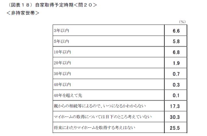 また、20年以内の住宅購入累積率は21.5%と下がっています。