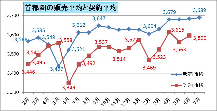 販売平均が3680万前後で推移していますので、ここ数か月は契約も3600万弱で推移するものと思えます。