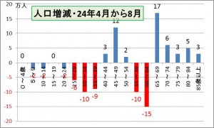 その他の世代でみると、55歳から64歳が25万人と大きく減少しました。団塊世代が65歳を超えてきたためです。