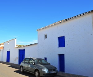 そして極め付けは、スペイン独特の白い壁に青いドアです。青空に映えてとても美しいです。シンプルモダンになっているのは偶然でしょうが、デザイン的な文化的美的感覚が底にはあるのだと思います。