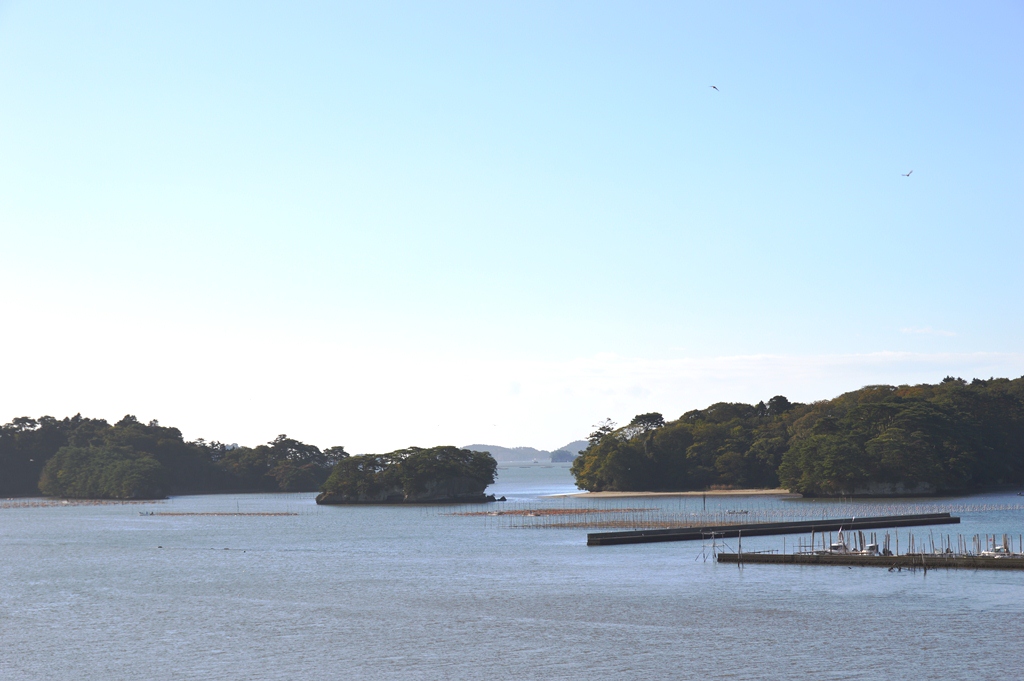 松島を見渡せるホテルに泊りましたが、松島の朝は美しいものでした。ただ、かきの養殖の網はポツンポツンとしかなく、少ない感じです。