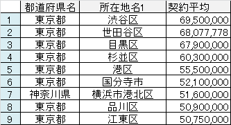 となっていて上位9区市が契約平均が5000万を超えています。