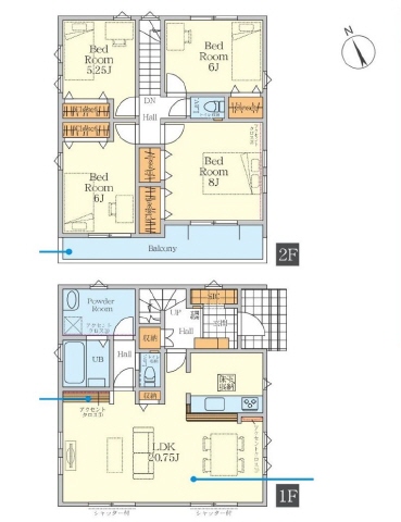20.7JLDKリビング階段ではありません。全室洋室、網戸付、玄関ミラー付 CLパイプハンガー付 LDKシャッター雨戸 S-ICL等収納豊富。ZEH水準適合住宅 |