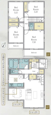 洋室5.2・洋室5.2・洋室5.2・洋室7.3・LDK18.6 |