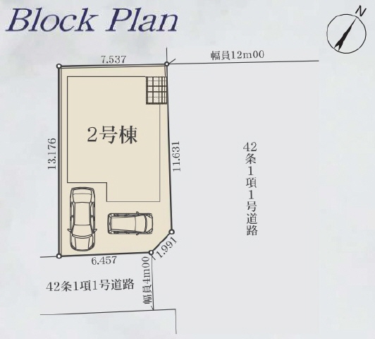 南東側道路(公道/幅員4m)に6m接道、北東側道路(公道/幅員12m)に11m接道 |