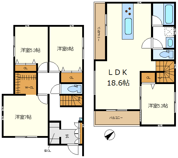 洋室5.3・洋室5.3・洋室6・洋室7・LDK18.6 |