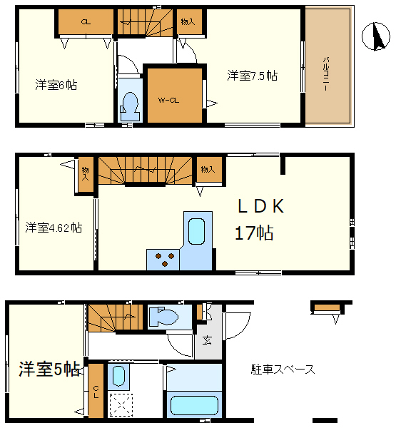 洋室4.6・洋室5・洋室6・洋室7.5・LDK17 |