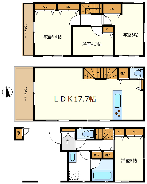 洋室4.7・洋室5・洋室6・洋室6.4・LDK17.7 |