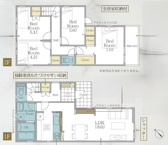 18JLDK、リビング階段ではありません。全室洋室仕様、食洗器 網戸 玄関ミラー付 CLパイプハンガー リビングシャッター付●ZEH水準省エネ住宅● |