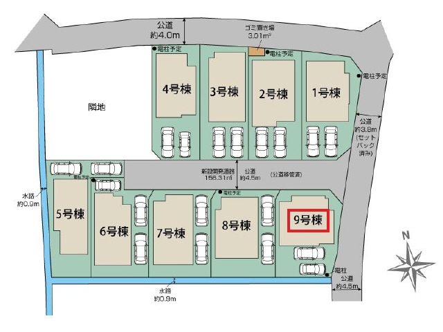 南側道路(公道/幅員4m)に8m接道、東側道路(公道/幅員3m)に11m接道 |