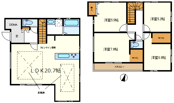 洋室5.2・洋室5.5・洋室6.9・洋室7.9・LDK20.7 |