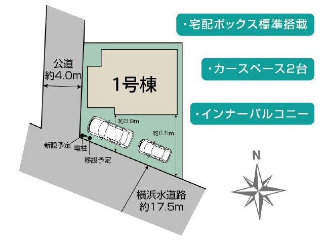 南側道路(幅員17m)に12m接道、西側道路(公道/幅員4m)に9m接道 |