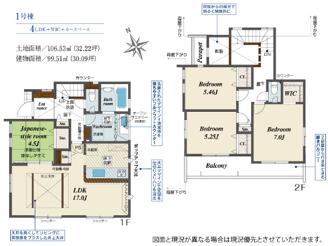 | 特記事項 | 17J+J4.5JLDK リビングイン階段ではありません 折上天井 ポップアップ天井 玄関吹抜 など立体的設計です。 | ||