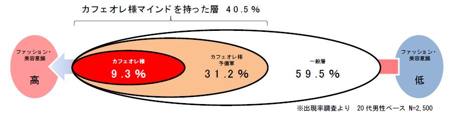 対象は15歳から34歳の若年男性ですが、その調査分析の中から、新しい消費者像の「カフェオレ様」層を見出しました。