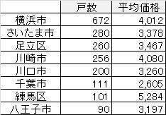神奈川県の新規販売が1488戸で平均価格3716万ですから、戸数がやや少ないといえます。相模原市など市都心から電車で1時間以上かかる市が少なかったです。