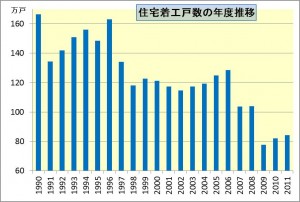 1999年以降は10年間120万戸平均に減少。