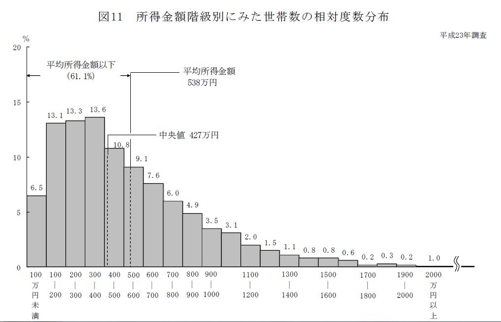 つまり、日本の世帯の半分は年収400万以下となってるということです。