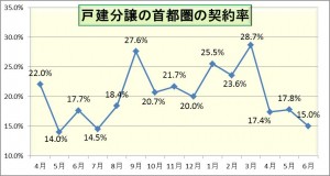 新築一戸建て分譲の6月の契約率は15%と低迷しました。