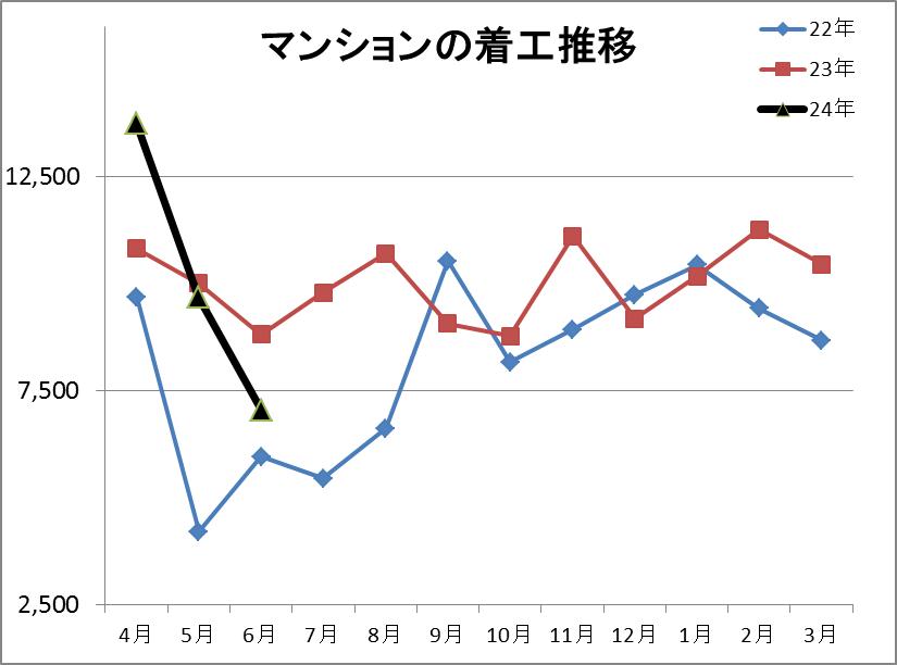 マンションの7036戸は一昨年の8月以来の7500戸割れです。