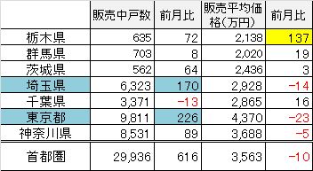 販売中戸数は、埼玉県が170戸増えたのと東京都が226戸増えたのが大きな要因です。