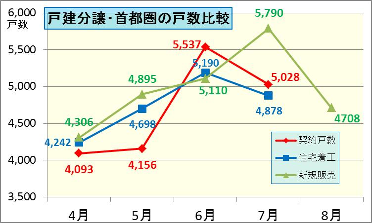 それが今年の7月も5790戸と今年最高と多かったために、前月比では減少となりました。