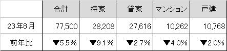 昨年の8月がフラット35Sの1%優遇の申請期限の駆け込みがあり8万戸を超えて多かったために今年の8月は前年比で下がったのです。
