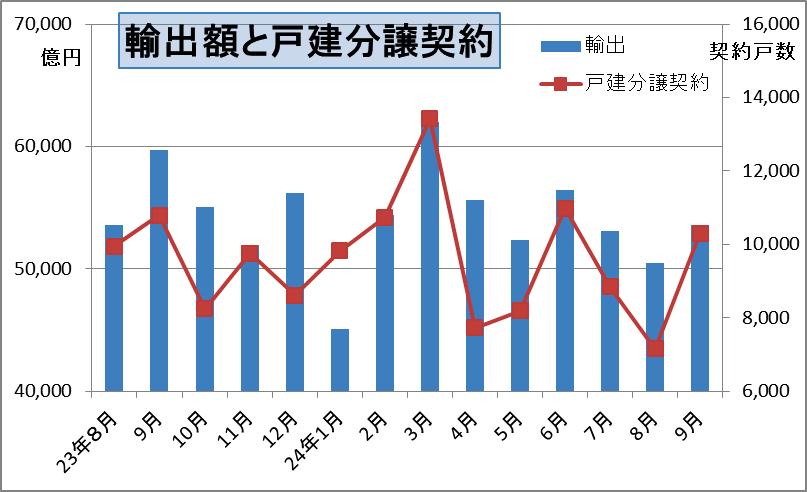 輸出額と新築一戸建ての契約は相関性が高いものとなっています。