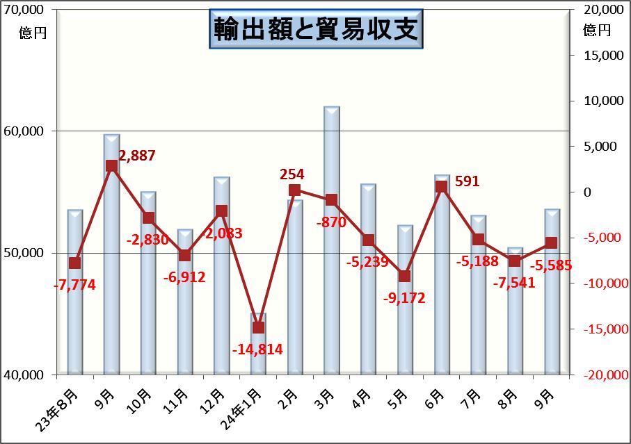 また、それにより貿易赤字は▼5585億円となり4月~9月の上半期では▼3兆2189億円とな大きな赤字となりました。