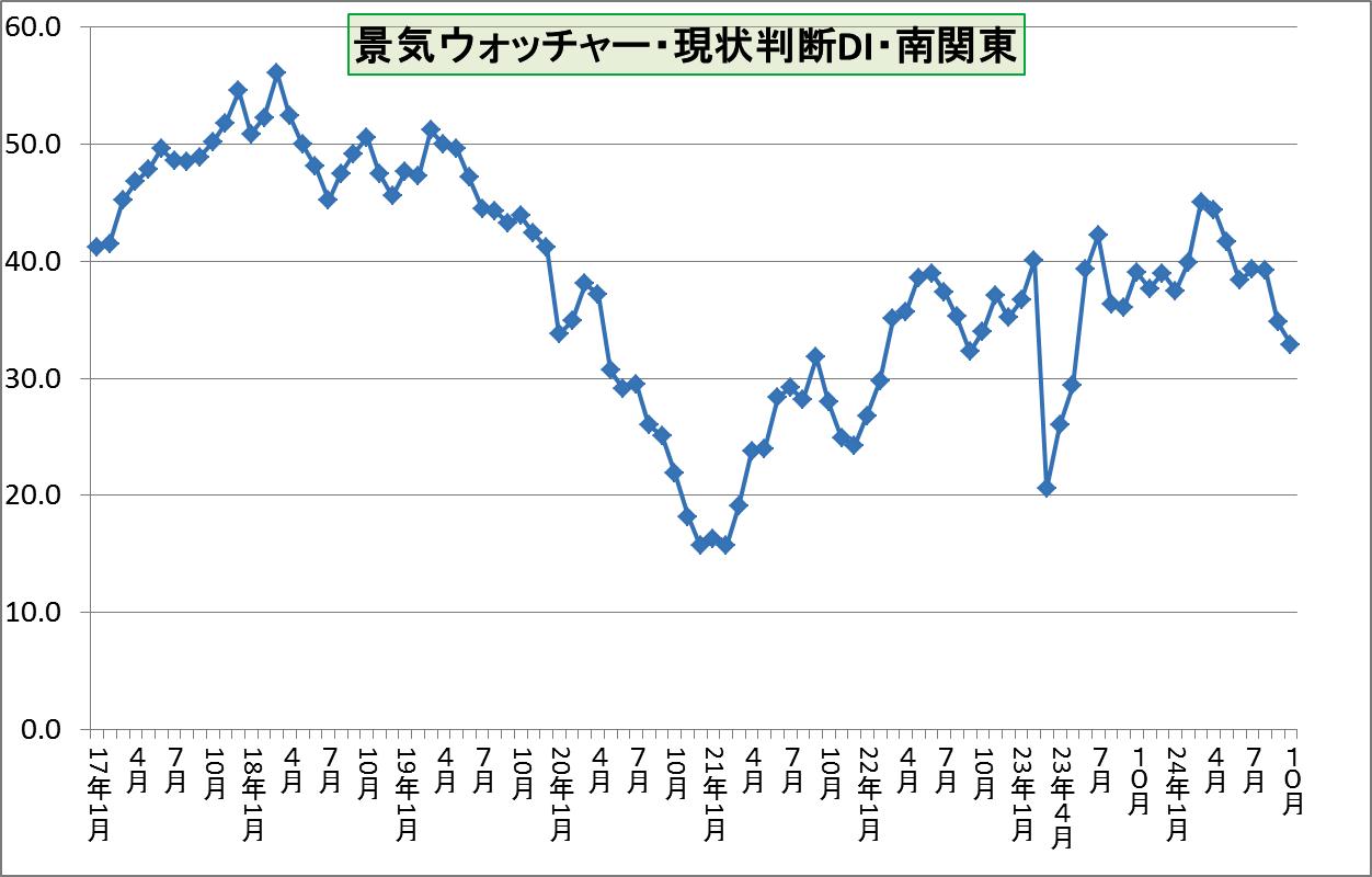 景気ウォッチャーの平成24年10月が内閣府より発表されましたが、全国の景気の現状判断DIは39.0となり前月比で▼2.2ポイント下がりました。