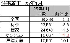 住宅着工統計の平成25年1月分が国土交通省より発表されました。