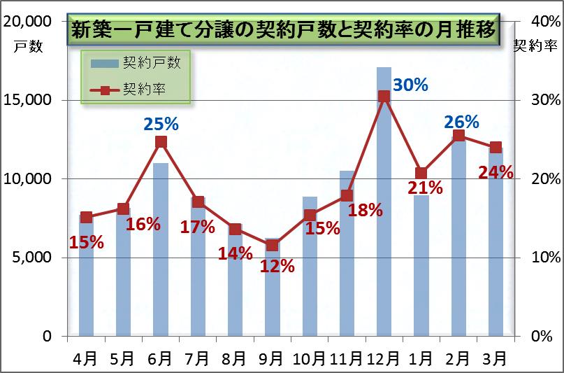 となると、しばらくは新築一戸建て分譲住宅の契約は1万2000戸を超えて、契約率も25%以上という好調な推移をみせるものと考えられます。