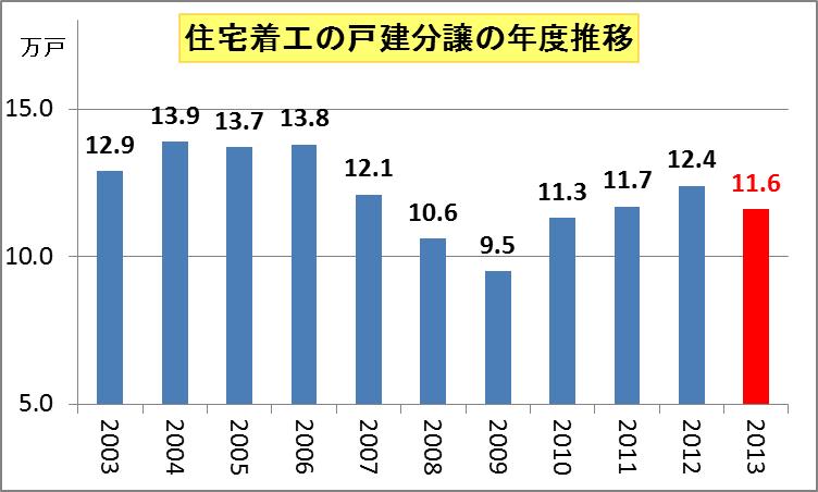 2009年にリーマンショックにより9万5294戸と10万戸割れしてから、これで3年連続で増えました。ただ2013年度はやや減ると予測されます。
