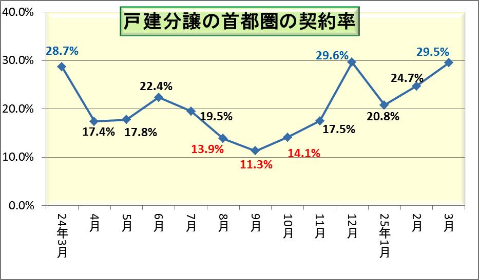 平成25年3月の新築一戸建て分譲の契約率は29.5%と好調でした。