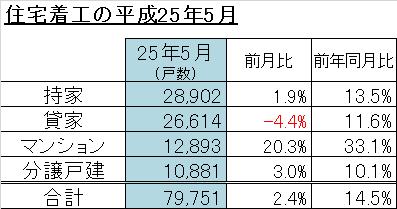 新設住宅着工戸数の平成25年5月分が国土交通省より発表されました。