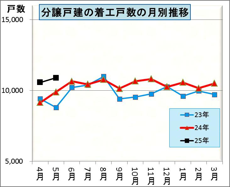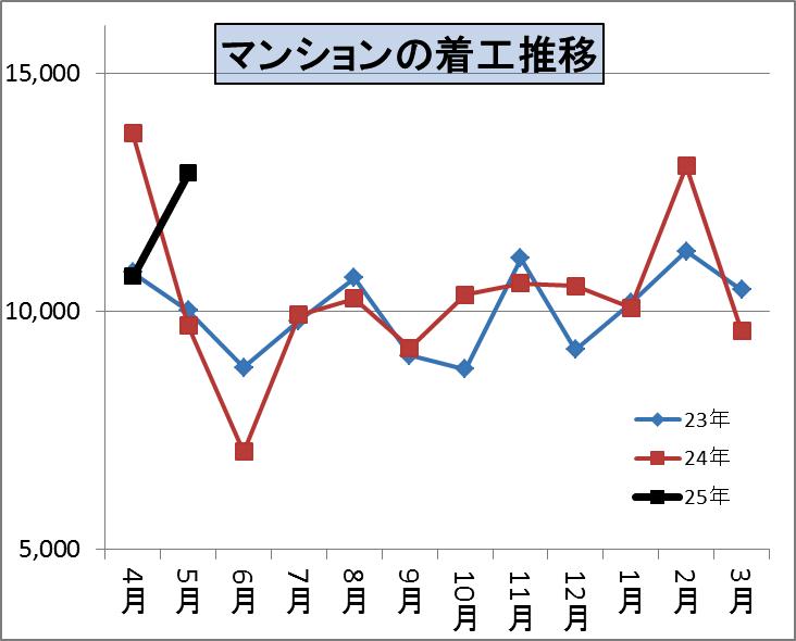 これは過去2年みると4月・5月は9000戸前後で推移していたものが4月10559戸で5月10881戸ですから1000戸あまり増えているといえます。