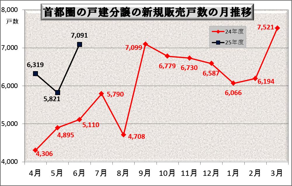 昨年の4月から8月までは平均4962戸で首都圏需要の4500戸よりも少し多い程度で推移していました。それが10月に7099戸と大きく増えて、それ以降は緩やかに減少しながらも6000戸台で推移しました。それが平成25年3月に7521戸と大きく増えて、この6月は再び7000戸台の突破となりました。