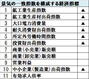 ▲マークをつけたのがその製造業の生産に左右されることが大きい指数です。なんと11個中に7個もあるのです。