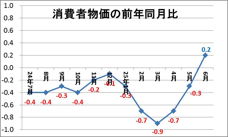 ここ一年は全て前年同月比マイナスであったのが、久々にプラスに転じました。平成25年3月にマイナス0.9と落ち込んでいましたが、それが4月・5月と改善をしていて6月にプラスとなり急改善をみせています。